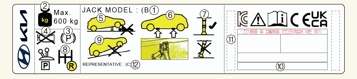* Stvarna oznaka dizalice u vozilu može se razlikovati od ilustracije. Za detaljnije specifikacije pogledajte naljepnicu učvršćenu na dizalicu.