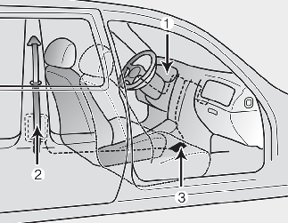 Systém předpínačů bezpečnostních pásů se skládá především z následujících součástí. Jejich umístění je znázorněno na vyobrazení: