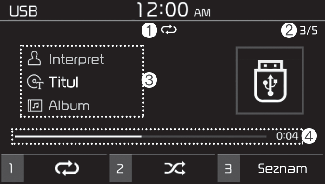 Information (Informace): Informace o momentálně přehrávané skladbě.