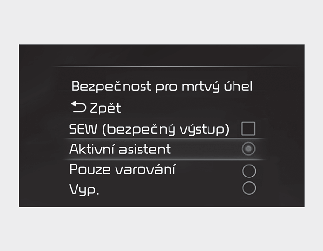 Při výběru možnosti ‚Off‘ (Vypnuto) se asistenční systém pro předcházení kolizím v mrtvém úhlu vypne.