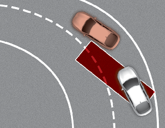 Asistenční systém pro předcházení kolizím v mrtvém úhlu nemusí fungovat správně při jízdě na silnici s mnoha zatáčkami. Funkce nemusí rozpoznat vozidlo ve vedlejším jízdním pruhu.