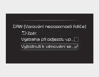Nastavení systému sledování bdělosti řidiče (Mimo CUV)