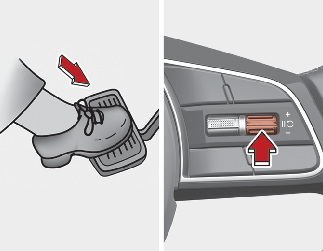 Pokud se před vámi nenachází žádné vozidlo, bude udržována nastavená rychlost; pokud se však před vámi nachází vozidlo, může se rychlost snížit, aby zůstala zachována vzdálenost mezi vozidlem před vámi a vaším vozidlem. Pokud vozidlo před vámi zrychlí, vaše vozidlo bude po zrychlení na nastavenou rychlost udržovat stejnou cestovní rychlost.