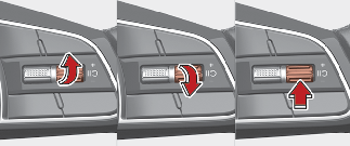 Zatlačte spínač + směrem nahoru, držte jej a sledujte nastavenou hodnotu rychlosti na přístrojovém panelu. Nastavená rychlost se každým takovýmto použitím spínače zvýší o 10 km/h. Po zobrazení požadované hodnoty rychlosti spínač uvolněte. Vozidlo zrychlí na nastavenou rychlost. Rychlost můžete nastavit až do 180 km/h.