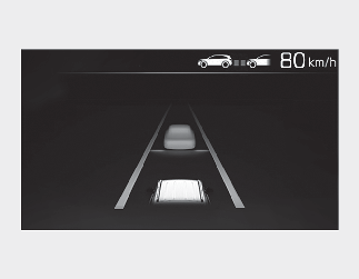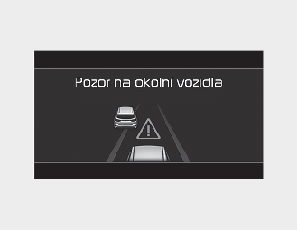 Odstup od vozidla jedoucího vpředu je malý nebo vozidlo před vámi jede rychleji či podobnou rychlostí jako vaše vozidlo.