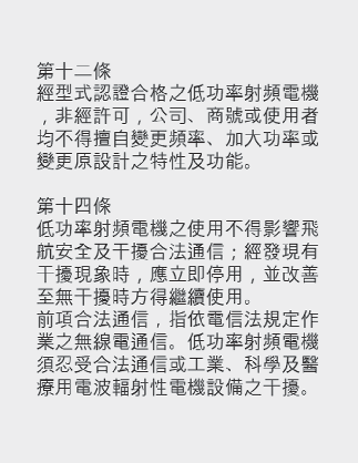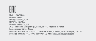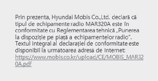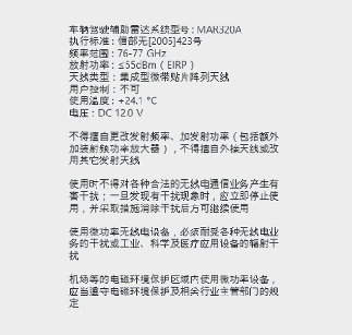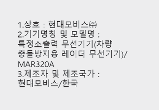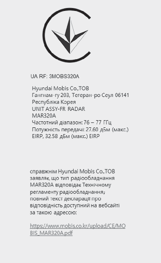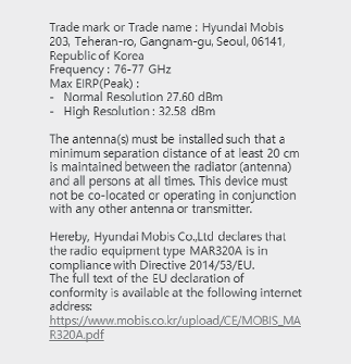 Radiofrekvenční součásti (Přední radar) splňují následující specifikace : (je-li součástí výbavy)