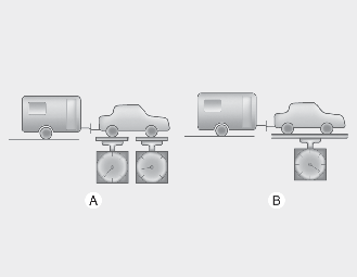 Po naložení přívěsu, samostatně zvažte přívěs a zatížení tažného zařízení, pro ujištění, že jsou obě hmotnosti v pořádku. Pokud nejsou, může být možné dosáhnout správného poměru jiným rozmístěním nákladu.