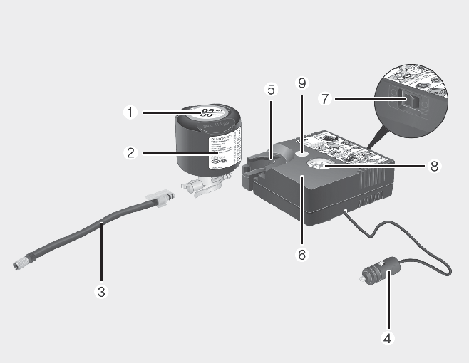 Součásti sady pro opravu pneumatik (TMK) (Pro pneumatiky 17/18")