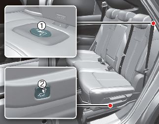 Wanneer u de stoelen op de 2e rij inklapt en neerlaat en uit het voertuig stapt vanaf de stoelen op de 3e rij, nadat het voertuig volledig tot stilstand is gekomen en de persoon op de stoel op de 2e rij uitstapt, drukt u op de schakelaar om de stoel op de 2e rij naar voren te verplaatsen en uit het voertuig te stappen. Druk niet op de knop om de stoelen op te klappen wanneer er mensen op de 2e rij zitten of wanneer ze uitstappen. Plotselinge beweging van de stoel kan letsel veroorzaken.