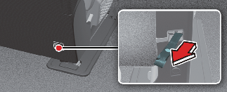 U kunt de stoel op de 2e zitrij ook ontgrendelen door te trekken aan de lus (indien van toepassing) die zich onder de rugleuning van de stoel op de 2e zitrij bevindt. Als er onder de rugleuning van de 2e zitrij een lus is, is er een label voorzien om aan te geven waar de lus zich bevindt.