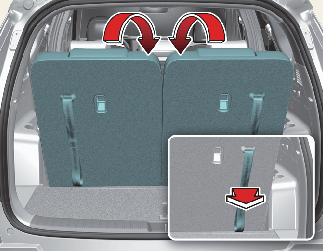 Trek de rugleuning omhoog terwijl u aan de hendel (2e zitrij) of lus (3e zitrij) trekt om de achterbank weer in zijn oorspronkelijke positie te plaatsen.