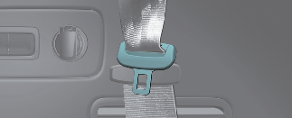 Als u de rugleuning van de stoelen achter (2e of 3e zitrij) neerklapt, moet u de gordelsluiting in de opbergruimte tussen de rugleuning en de zitting steken. Hierdoor wordt voorkomen dat de gespen beschadigd raken.
