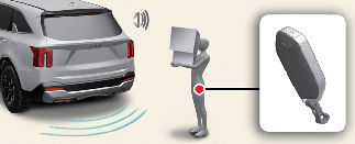 OPMERKINGKom niet in de detectiezone als u niet wilt dat de achterklep opengaat. Als u onbedoeld in de detectiezone komt en de alarmknipperlichten en het belgeluid in werking treden, verlaat dan de detectiezone met de smart key. De achterklep zal gesloten blijven.