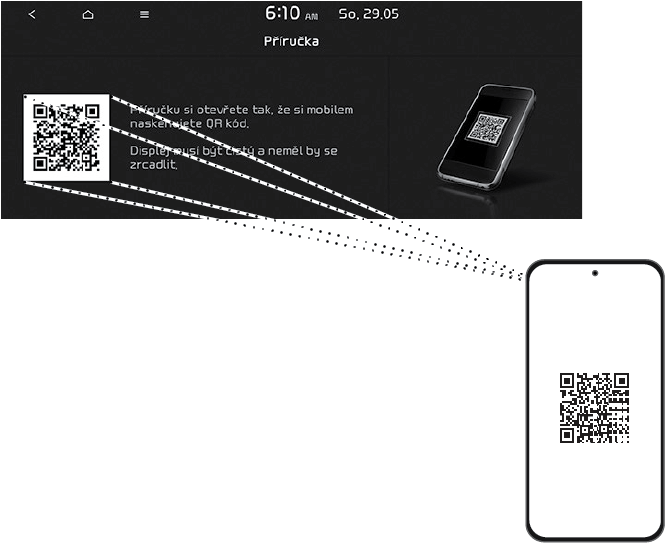 Naskenujte kód QR: Tiskněte [SETUP] > [Obecně] > [Informace o systému] > [Uživatelská příručka]. Naskenujte kód QR, pak klepnutím na URL adresu v kódu přejděte na webovou stránku.