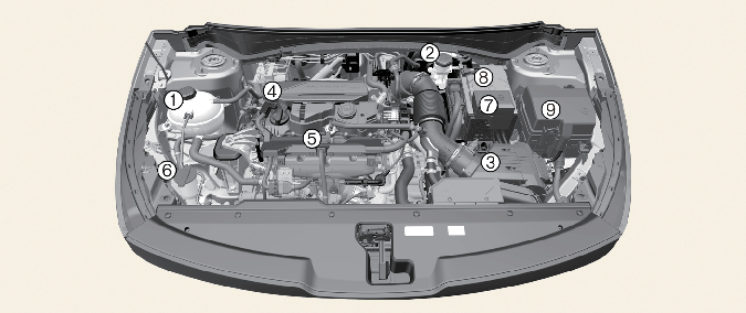 * Skutečný vzhled motorového prostoru vozidla se může lišit od vyobrazení.