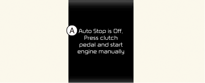 Systém může vyžadovat ruční nastartování motoru, objeví-li se kontrolka na tlačítku ISG OFF a pokud je vozidlo vybaveno displejem AUTO STOP, trvale se zobrazuje varovná zpráva.