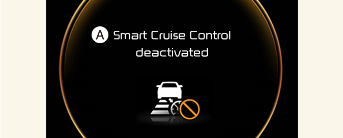) stisknut, když nejsou splněny provozní podmínky adaptivního tempomatu, na přístrojovém panelu se zobrazí výstražná zpráva