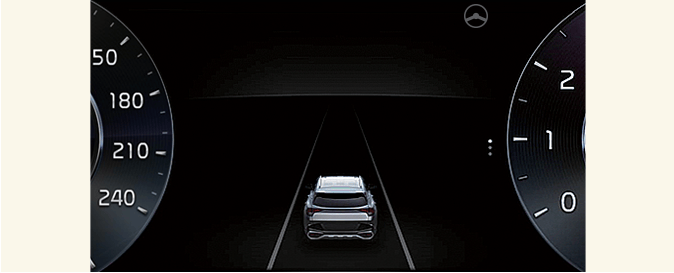 Jsou-li detekována obě značení jízdních pruhů, změní se barva symbolů čar na přístrojovém panelu ze šedé na bílou.