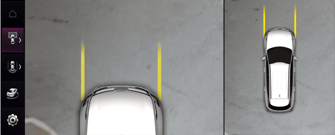 Chcete-li používat tuto funkci, se zapnutým systémem vozidla vyberte na obrazovce informačního systému z nabídky Nastavení možnost Vozidlo → Jízdní asistent → Bezpečné parkování → Automatické zapnutí systému zobrazování okolí.