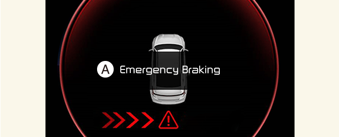 Když se vozidlo zastaví po aktivaci nouzového brzdění, zobrazí se na přístrojové desce výstražná zpráva. Z bezpečnostních důvodů by měl řidič neprodleně sešlápnout brzdový pedál a zkontrolovat dopravní situaci v bezprostředním okolí vozidla.