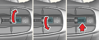 Stiskněte spínač + směrem nahoru nebo spínač - směrem dolů a uvolněte jej při dosažení požadované rychlosti. Stiskněte spínač + směrem nahoru nebo spínač - směrem dolů a držte jej. Rychlost tempomatu se nejprve zvýší na nejbližší násobek deseti (nebo násobek pěti v případě měření v mílích) a potom se po každém takovém posunutí přepínače zvýší o10 km/h (5 mil/h).