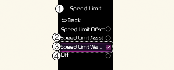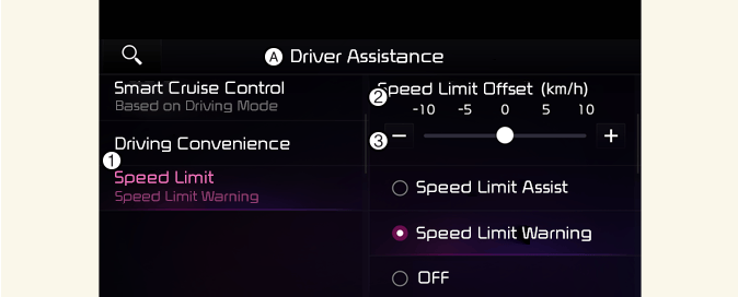 Pokud je zvoleno Vypnuto, inteligentní asistent pro rychlostní omezení se vypne.