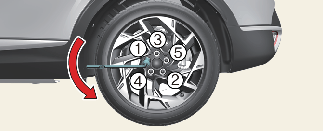 Abyste zabránili pohybu vozidla při výměně pneumatiky, vždy zcela zatáhněte parkovací brzdu a vždy zablokujte kolo, které je napříč vyměňovanému kolu.