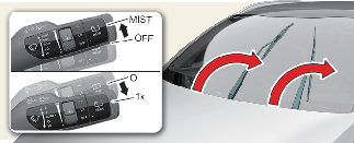 Přepínač stěrače přestavte do polohy jednoho cyklu (1x/MIST).