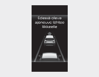 Kun edessä oleva ajoneuvo lähtee liikkeelle, liikkeellelähtöilmoitus ilmoittaa asiasta kuljettajalle mittaristossa viestillä ”Leading vehicle is driving away” (Edessä oleva ajoneuvo lähtee liikkeelle) ja äänivaroitus soi.