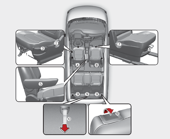 좌석을 움직일 때는 뒷좌석 승객에 유의하십시오.