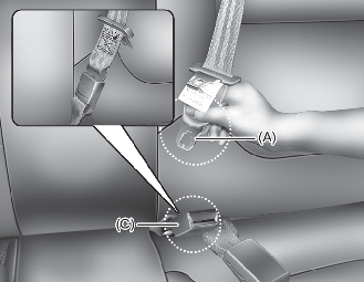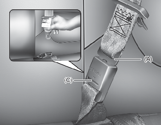 경고뒷좌석 중앙 시트벨트 사용할 때는 플레이트(A)와 버클(C)은 항상 체결해 두십시오.