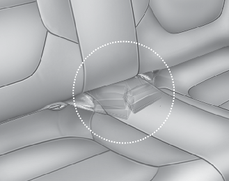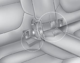 사용하지 않거나 등받이를 접을 때에는 안전벨트의 버클을 뒷좌석 쿠션의 보관장소에 밀어 넣어 보관하십시오.