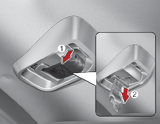 안전벨트 보관함 홀에서 플레이트를 꺼낸 후(1), 벨트를 천천히 당기십시오(2).