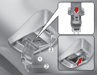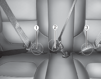 * ②: 뒷 중간좌석 안전벨트 체결용 버클