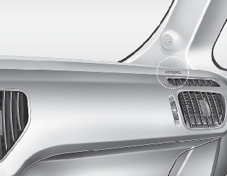 동승석 에어백은 글로브박스 위 인스트루먼트 패널에 내장되어 있습니다. 따라서 인스트루먼트 패널 위 어느 곳에도 물건이나 부착물을 올려 놓지 마십시오.