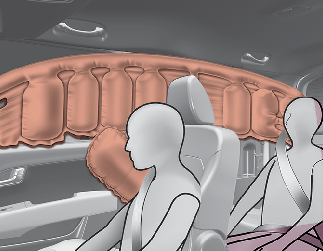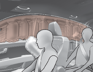 충돌 또는 전복 사고 시 에어백 작동 조건에 해당하면 앞좌석과 뒷좌석 도어쪽 승객의 머리를 보호하기 위하여 작동됩니다.