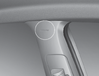 사이드 및 커튼 에어백이 있는 위치에는 어떤 물건도 설치하지 마십시오. 또한, 커튼 에어백이 팽창되는 부근(도어, 도어 유리창, 앞과 뒤 양옆의 필러 트림, 루프 사이드 레일)에도 물건을 부착하지 마십시오.