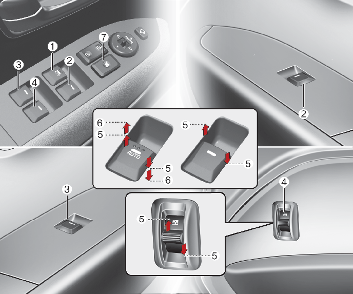> 편의 장치 > 유리창 열림/닫힘 장치 > 유리창 열림/닫힘 스위치