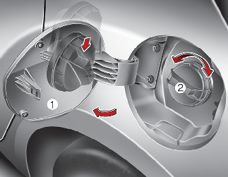 연료 주입구 캡(2)을 시계 반대 방향으로 돌려 여십시오.