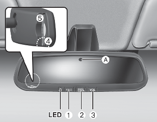 야간 주행 시 룸미러에 비치는 뒷차 전조등 빛을 센서(A)로 자동 감지하여 미러의 반사율을 자동으로 낮추어 운전자의 눈부심을 줄이는 장치입니다.