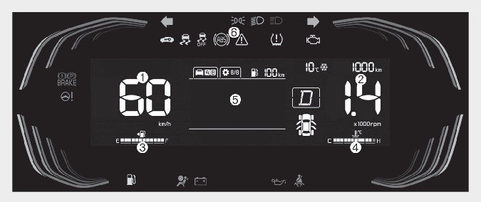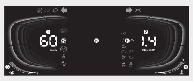 * 예시된 클러스터 형상과 LCD 표시창의 내용은 실제 차량의 형상 및 내용과 상이할 수 있습니다.