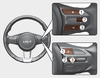 LCD 표시창 모드는 스티어링 휠에 장착된 버튼을 이용하여 변환할 수 있습니다.