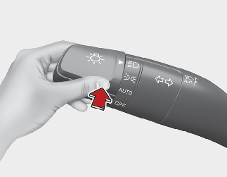 스위치를 클러스터 방향으로 밀어 놓으십시오. 또는 운전자 방향으로 당기고 있으십시오. (클러스터에 상향표시등( |