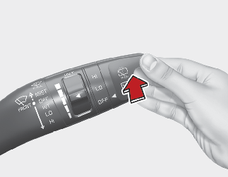 스위치를 운전자 반대 방향으로 밀면 뒷유리에 와셔액이 분출되면서 와이퍼가 스위치를 밀고 있는 동안 작동됩니다.