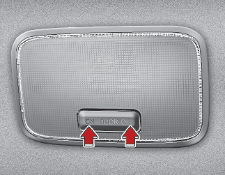 DOOR: 도어를 열면 켜지고 닫으면 약 30초 간 켜진 후 꺼집니다. 또한, 리모컨 키(또는 스마트 키)로 도어를 잠금 해제하면 약 30초간 켜진 후 꺼집니다. 실내등이 30초 켜진 상태를 유지하는 동안, 시동을 「ON」 하거나 모든 도어를 잠그면 즉시 꺼집니다. 시동이 꺼진 상태 또는 「ACC」 위치에서 도어가 열리면 실내등이 최대 20분 동안 켜진 후 꺼지나, 시동 「ON」 위치에서는 계속 켜집니다.