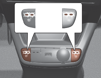 시동 상태에서 해당 좌석 히터 버튼을 누르면 강약조절 표시등이 켜져 사용 중임을 나타내고 해당 좌석이 따뜻하게 됩니다.
