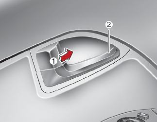 운전석 도어는 도어 잠금 스위치(1)가 잠금 위치에 있어도 도어 손잡이(2)만 잡아 당기면 도어 잠금 스위치가 해제되면서 도어가 열립니다.
