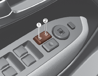 운전석에 있는 중앙 도어 잠금 해제 스위치(2)를 누르면 모든 도어가 잠금 해제됩니다.