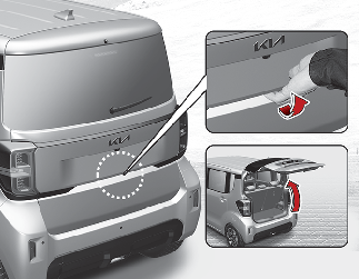 잠금 해제된 상태에서 테일게이트 손잡이의 스위치를 누르면서 들어 올리십시오.