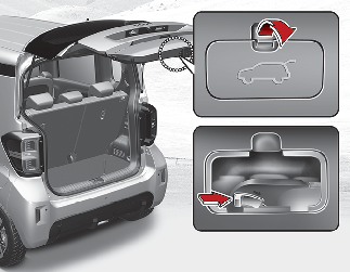 비상시 화물칸에서 테일게이트 잠금 해제 장치를 이용하여 테일게이트를 열 수 있습니다.